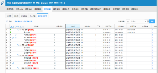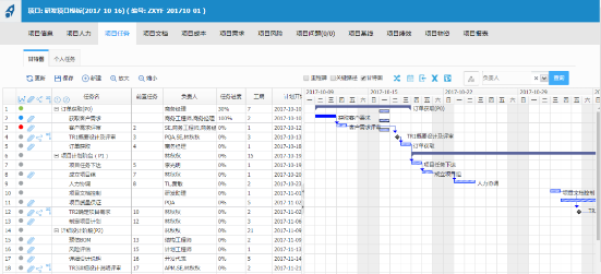 2、支持多级计划形式:里程碑计划、1/2/3/4级项目计划。项目计划以甘特图形式直观展示,有缩放功能。可显示任务的先后置关系;可选择任务层级代号,批量展开相应层级的所有任务;可选择显示里程碑任务或关键路径。